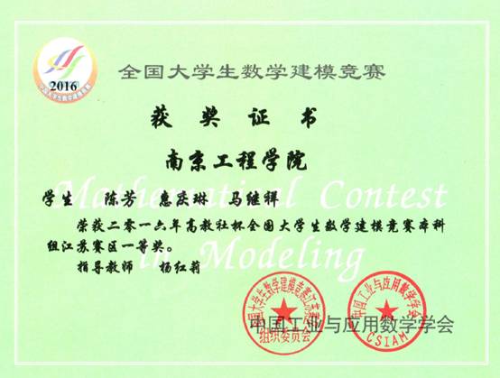 日前,2016高教社杯全国大学生数学建模竞赛结果揭晓,由我校数理部宋超老师指导,计算机凯发苏醒、电力凯发唐晨涛、陈铮三位同学的参赛作品获得全国一等奖的好成绩,实现了我校在该项赛事本科组比赛中国家级奖励的历史性突破。由数理部杨红莉老师指导,通信凯发陈芳、惠庆琳、马继祥三位同学的参赛作品获得江苏赛区一等奖;由数理部徐善顶老师指导,计算机凯发徐朋、王汉谱和电力凯发黄稀滔三位同学的参赛作品获得江苏赛区二等奖。